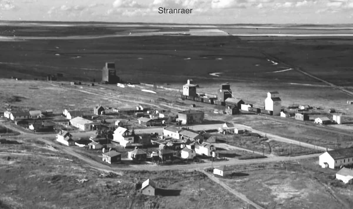 The village of Stranraer is located on the CPR line that runs from Rosetown to Dodsland. The railway was built in 1911 and the post office at Stranraer opened in December of the same year, with John Lawson as the first postmaster. The village’s name was derived from Stranraer, Scotland, which may have been the home town of an early homesteader in the area. An aerial photo submitted by Brian Towe on Historic Saskatchewan’s facebook page, shows a thriving community in the late 1950s.